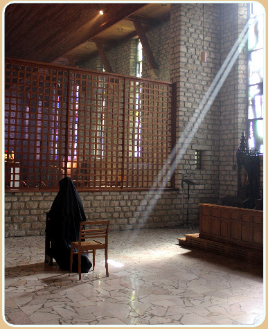 « La clôture nous permet de rejoindre le monde, mais à un niveau supérieur : on est obligées d’aller, non pas horizontalement, mais d’aller « par-dessus », et c’est la manière que nous avons de rejoindre le monde et donc, en définitive, par la prière. Tout revient à la prière. Les gens qui passent au monastère, les jeunes qui n’ont pas l’habitude de vivre dans une ambiance religieuse, sont étonnés par notre clôture, mais quand on leur explique, quand on leur dit que ce n’est pas un moyen de fuir le monde, mais que, au contraire, c’est un moyen de rencontrer le monde à un autre niveau, ils acceptent tout de suite » Sr J.