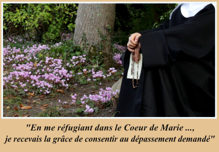 Il y eut donc des combats mais au sein même de la tempête, il me semblait que c’était le Christ qui me demandait : « M’aimes-tu ? M’aimes-tu plus… ? » Alors, en m’appuyant sur Lui, en me réfugiant dans le Cœur de Marie, cette Mère à qui Il nous a tous confiés du haut de Sa Croix, je recevais la grâce de consentir au dépassement demandé.