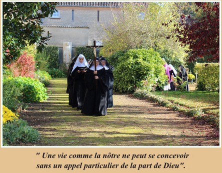 Aujourd’hui je peux témoigner, avec une immense gratitude, que la promesse que nous fait St Benoît dans sa Règle n’est pas vaine : « Au fur et à mesure que l’on progresse, écrit-il, le cœur se dilate et l’on se met à courir avec une ineffable douceur d’amour dans la voie des commandements divins ». Oui, le cœur se dilate dans la joie d’être aimée, de Dieu, de ses Sœurs, et de les aimer en retour, en vérité. Joie aussi d’être ensemble, ouvertes et attentives aux attentes, aux souffrances et aux besoins de l’Église et du monde et de les porter d’un même cœur, avec espérance, dans notre prière de louange et d’intercession.